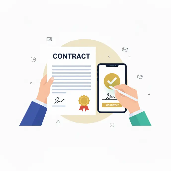 Scellez notre collaboration en toute sérénité. Votre contrat inaugure une expérience où l'efficience est notre maîtres mots.